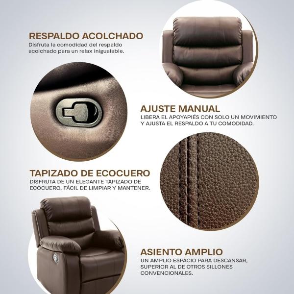 SILLON REPOSET RECLINABLE INDIVIDUAL, TAPIZADO EN SIMIL CUERO COLOR MARRON