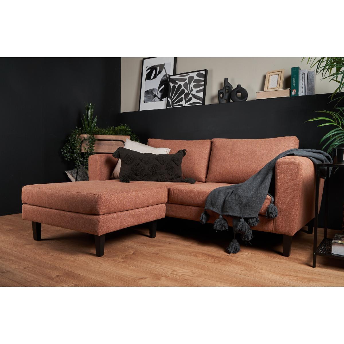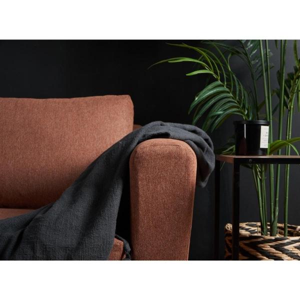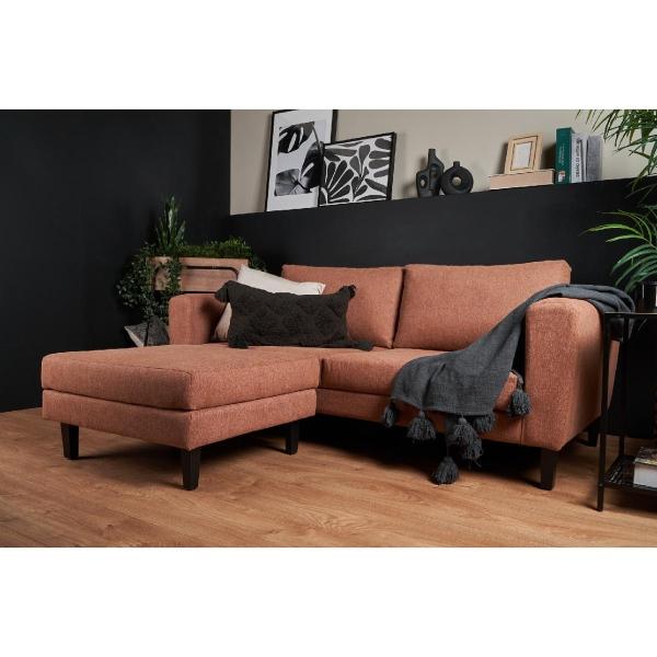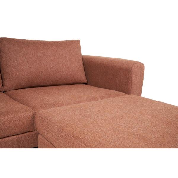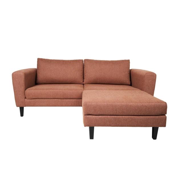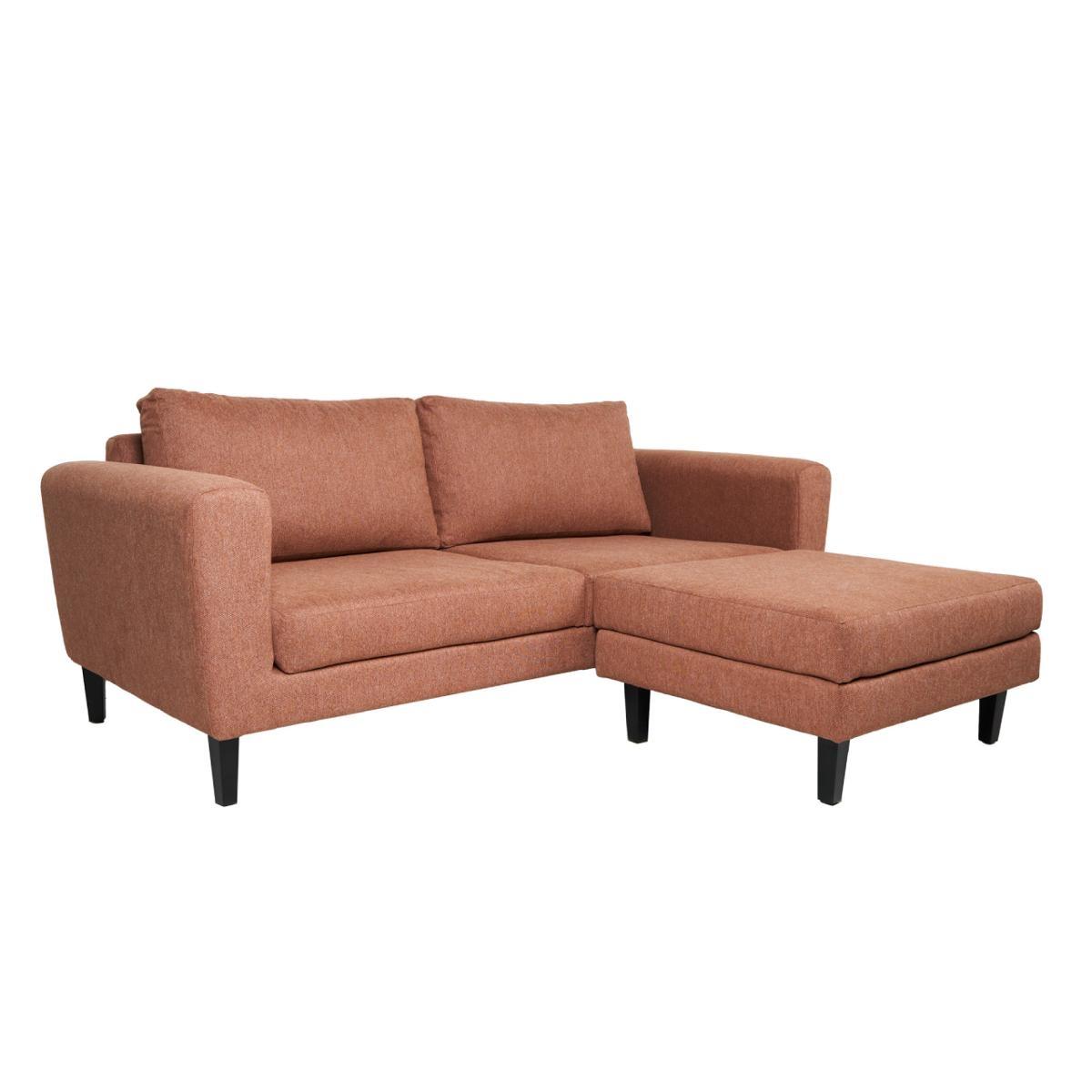 Sala Esquinera de 2 Plazas con Taburete Tapizados en Tela Marrón. Estructura de Madera Sólida