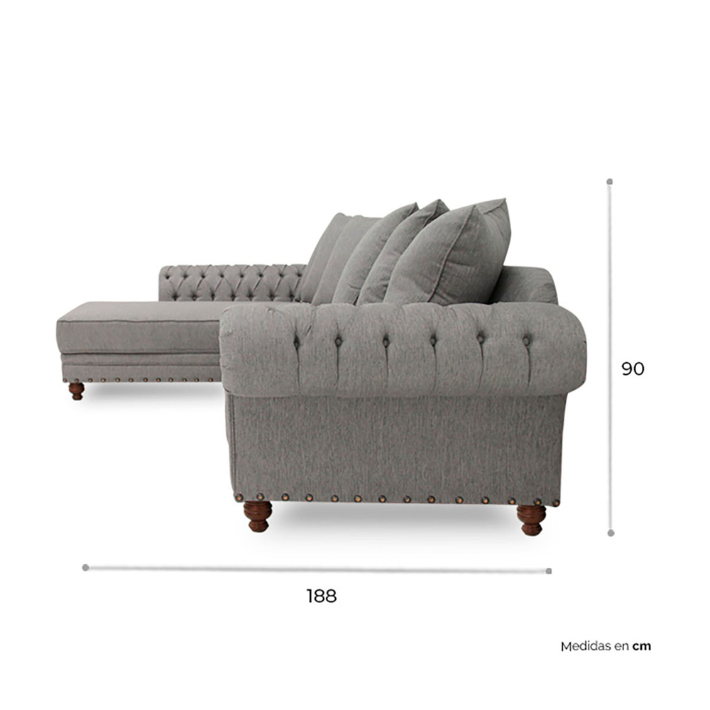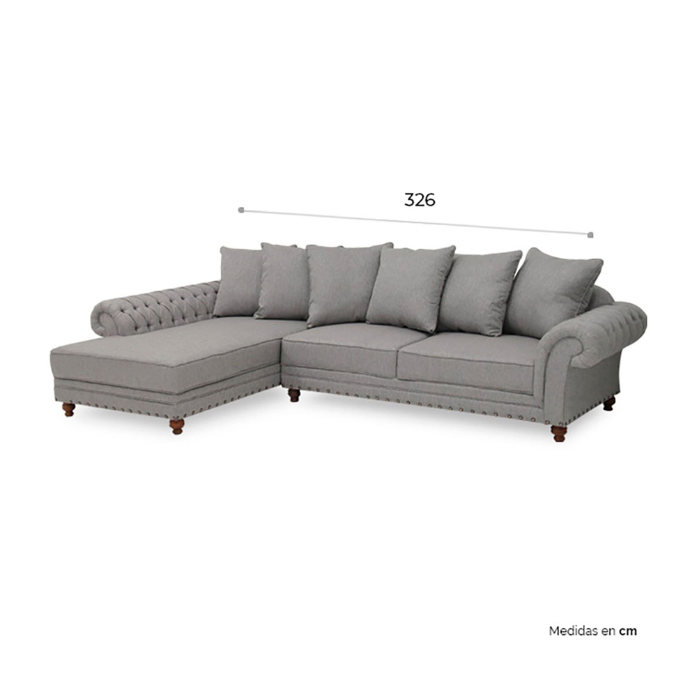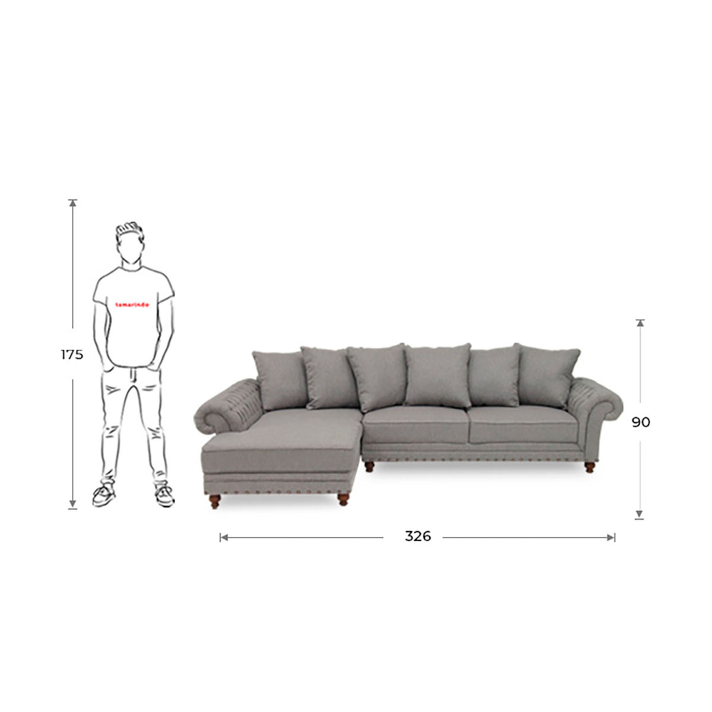 La sala esquinera tela gris wil b/izquierdo de tamarindo es la pieza perfecta para tu espacio , mide 90 cm de largo, 326 cm de ancho y 188 cm de profundidad
