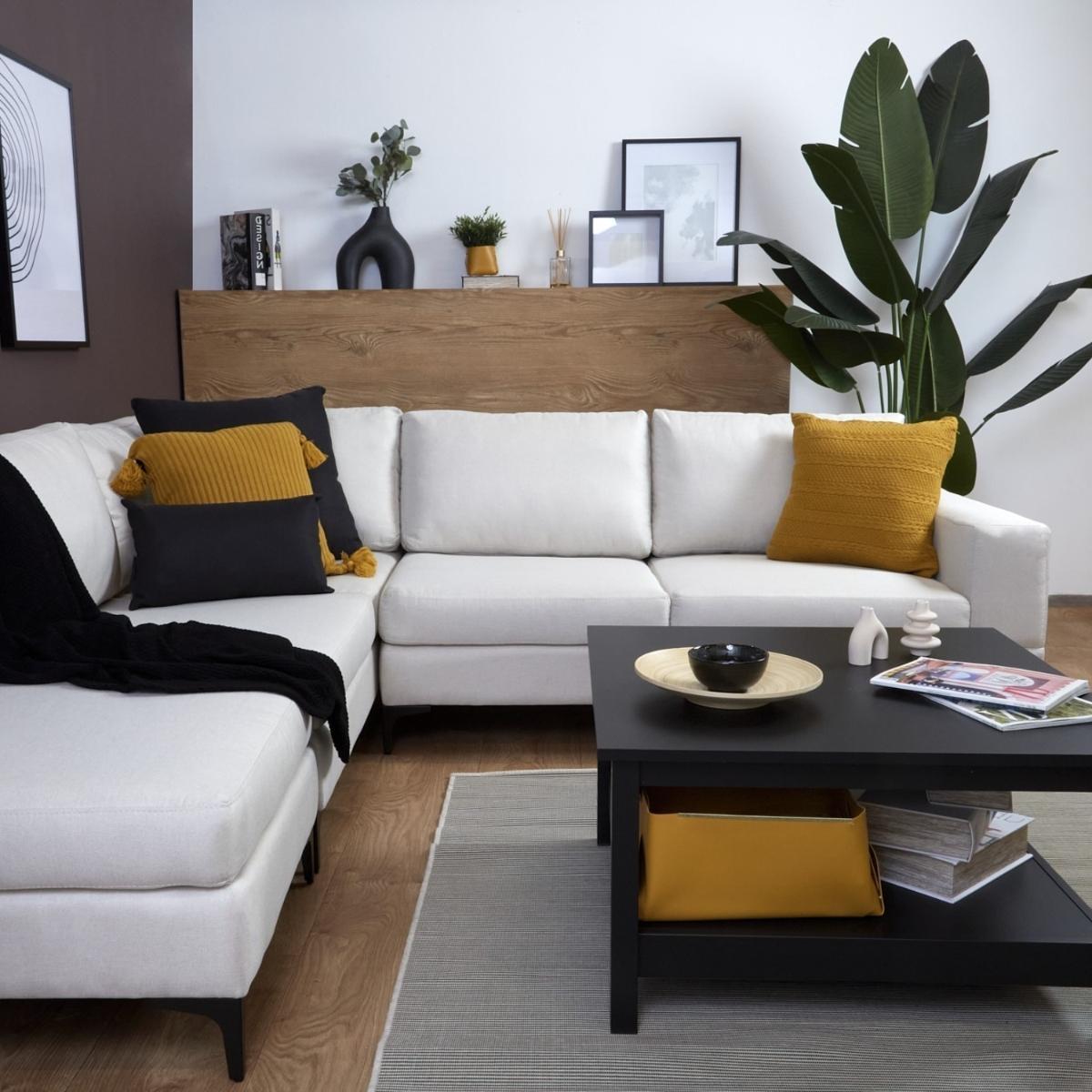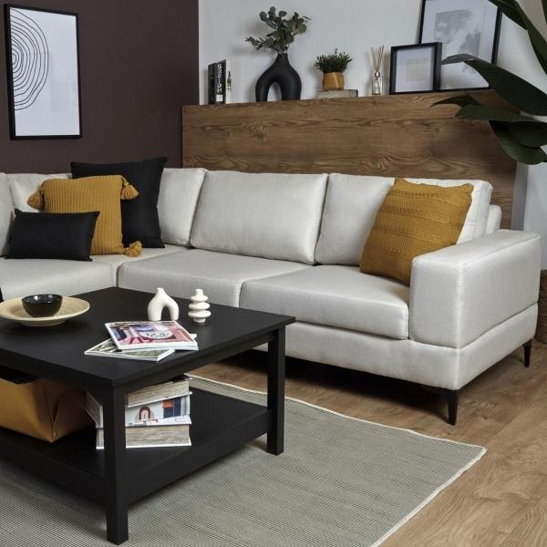 No te dejes engañar por sus líneas rectas sentarse en nuestro sofá es un auténtico sueño. Con espacio de sobra para toda la familia, este sofá esquinero se convertirá en el héroe de tu salón. Además, su estructura de líneas rectas y su tapizado en tela harán que sea muy fácil de combinar con cualquier estilo de decoración. Mantenimiento te recomendamos usar teflón (Fabric Protector, Scotch Gard) para prevenir absorción de líquidos. Manchas y derrames de líquidos a pesar de que el tejido de la tela es muy cerrado para evitar la rápida absorción de líquidos, te recomendamos lo siguiente. Limpiar con un trapo seco al momento del derrame. Si la mancha persiste, humedecer el trapo con jabón neutro y tallar hasta que la mancha desaparezca. Para manchas más profundas, utilizar espuma sin jabón (recomendamos marca Carbona) y tallar con un trapo húmedo.