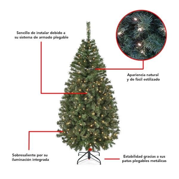 PINO VERMONT VERDE C/260 LUCES LED CALIDA NO.6 DE 190 CM