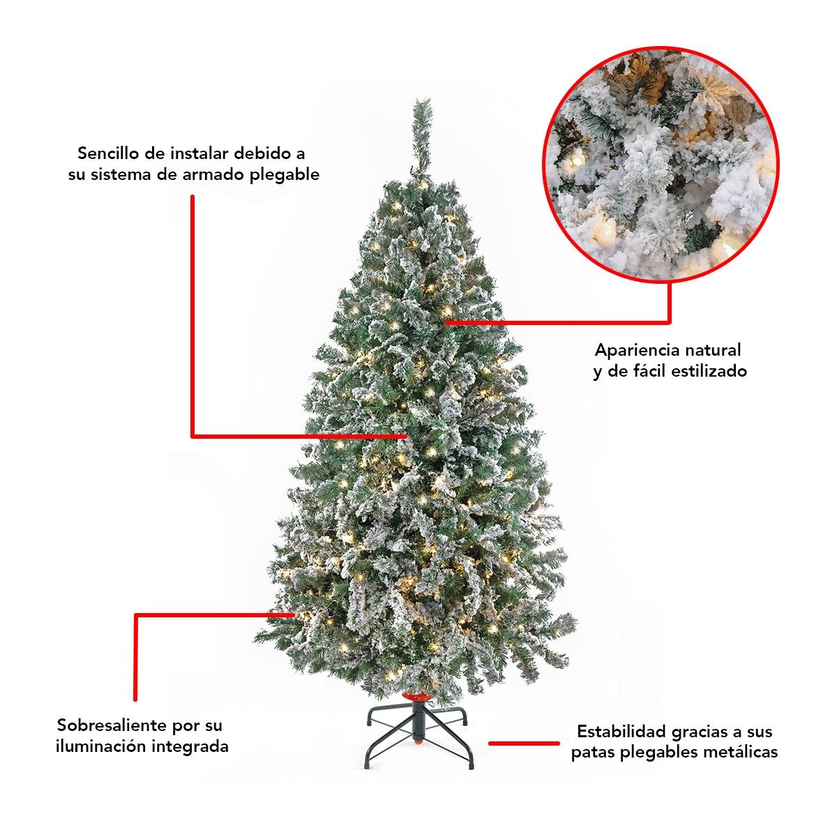 PINO VERMONT VERDE NEVADO C/300 LUCES LED CALIDA NO.7 DE 220 CM