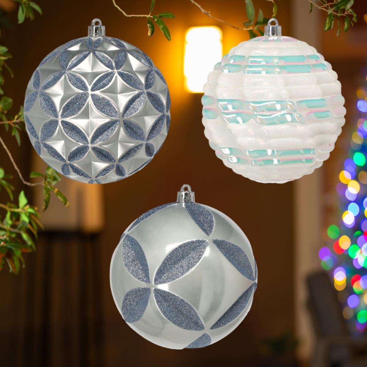 ESFERA NAVIDEÑA KRYSTAL CON RELIEVES BLANCO 20 CM DISPONIBLE EN 3 DIFERENTES DISEÑOS
