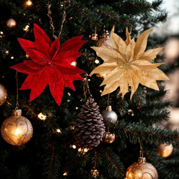 NOCHEBUENA DORADA Y ROJA 68 CM