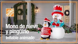 INFLABLE NAVIDEÑO ILUMINADO DE MONO DE NIEVE Y PINGÜINO CON PALETA 1.83 M