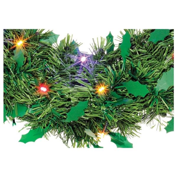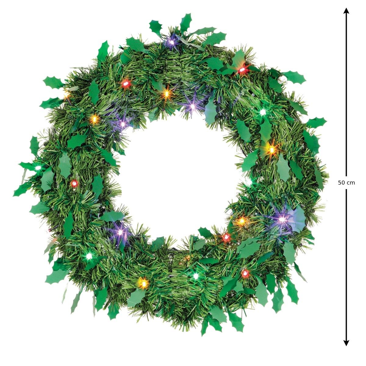 CORONA NAVIDEÑA ILUMINADA LED MULTICOLOR VERDE PINO BOA HOJAS GIGANTES DE 50 CM