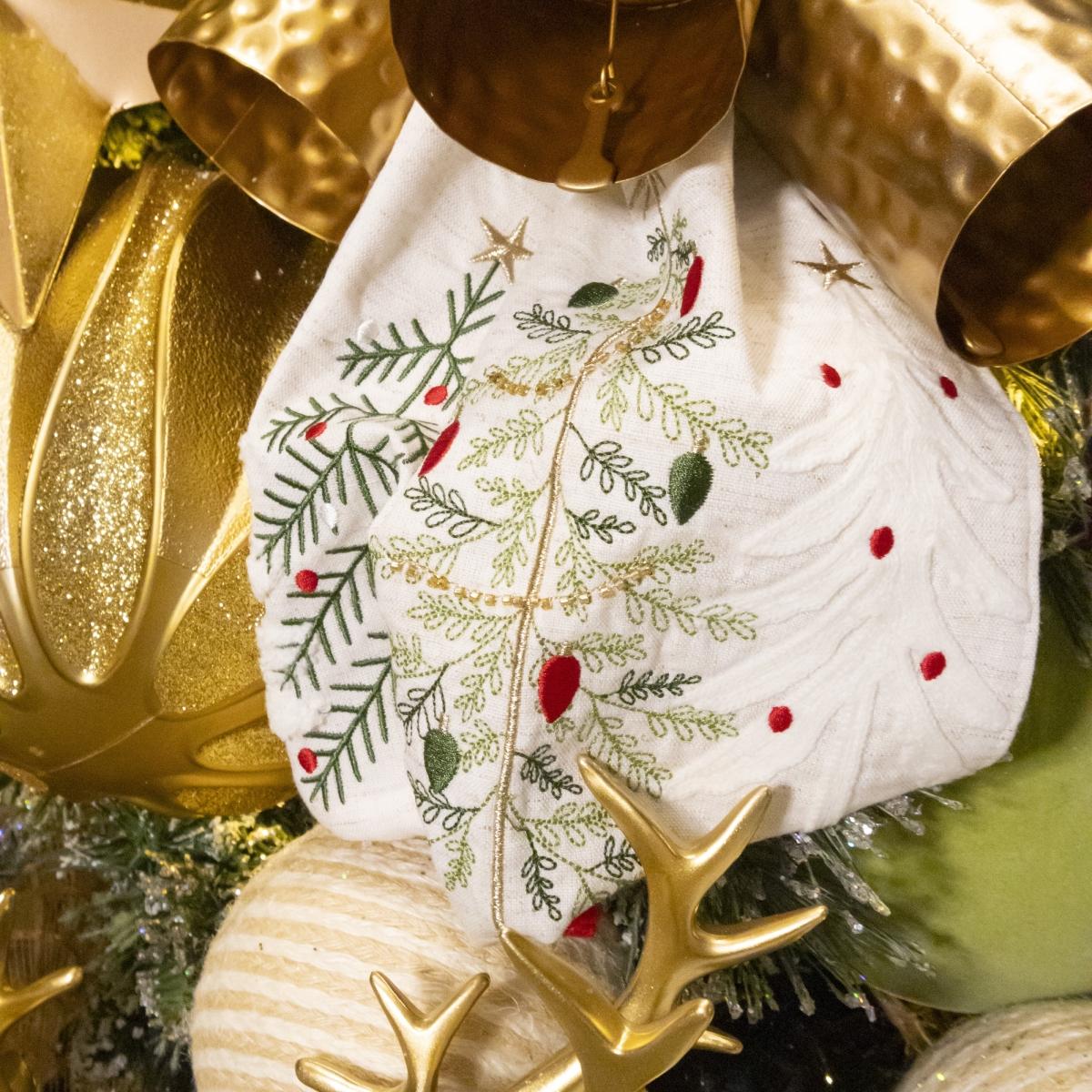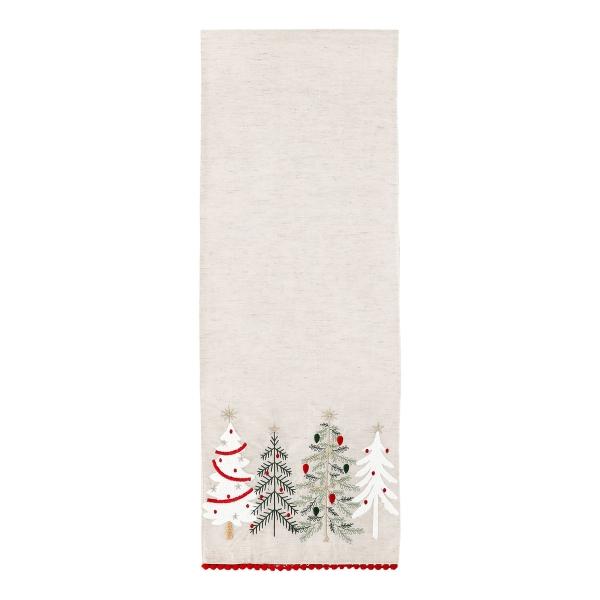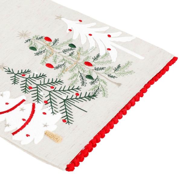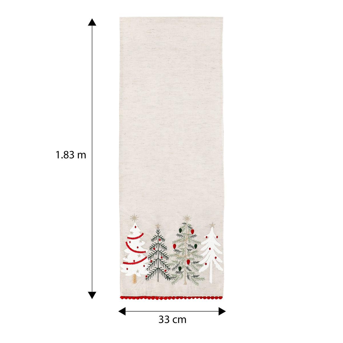 CAMINO DE MESA BORDADO DE PINOS NAVIDEÑOS 1.83 M X 33 CM
