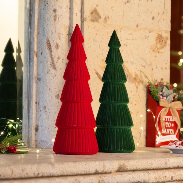 PINOS DECORATIVOS DE TERCIOPELO 32 X 11.5 CM DISPONIBLE EN VERDE Y ROJO