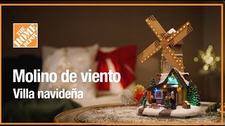 DECORACIÓN DE VILLA NAVIDEÑA CON MOLINO ILUMINADO 34CM CON SONIDO Y MOVIMIENTO