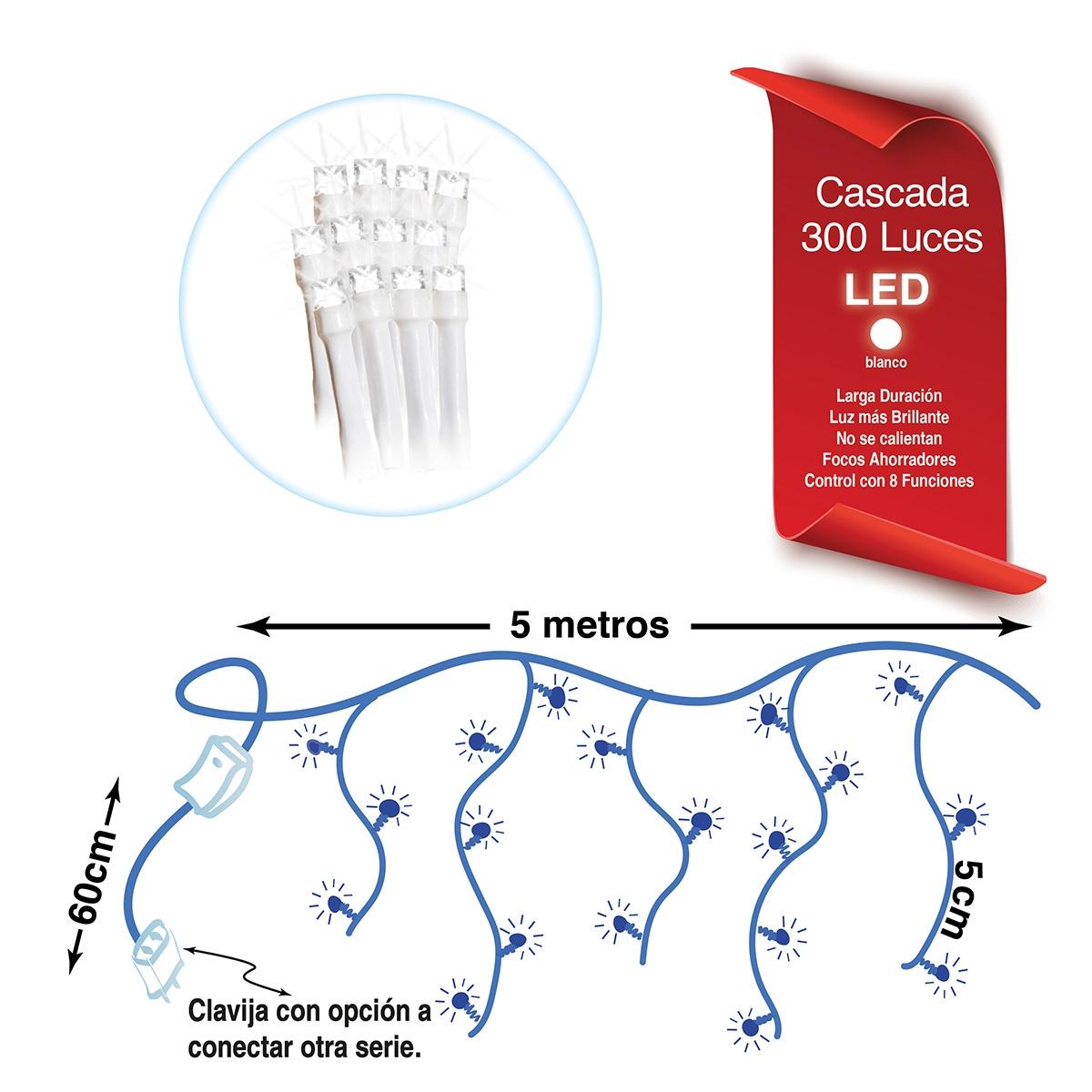 SERIE DE 300 LUCES LED BLANCAS 8 FUNCIONES