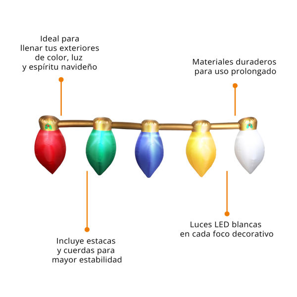 INFLABLE NAVIDEÑO ILUMINADO DE TIRA FOCOS GIGANTES 1.15 X 4.11 M X 52 CM