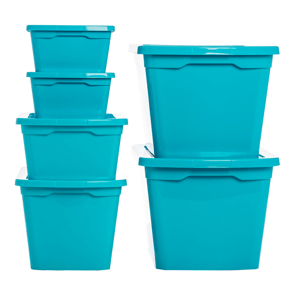 SET 6 CAJAS DE PLÁSTICO 2/30-2/6-1/15 1/11 LTS ECOLINE AZUL