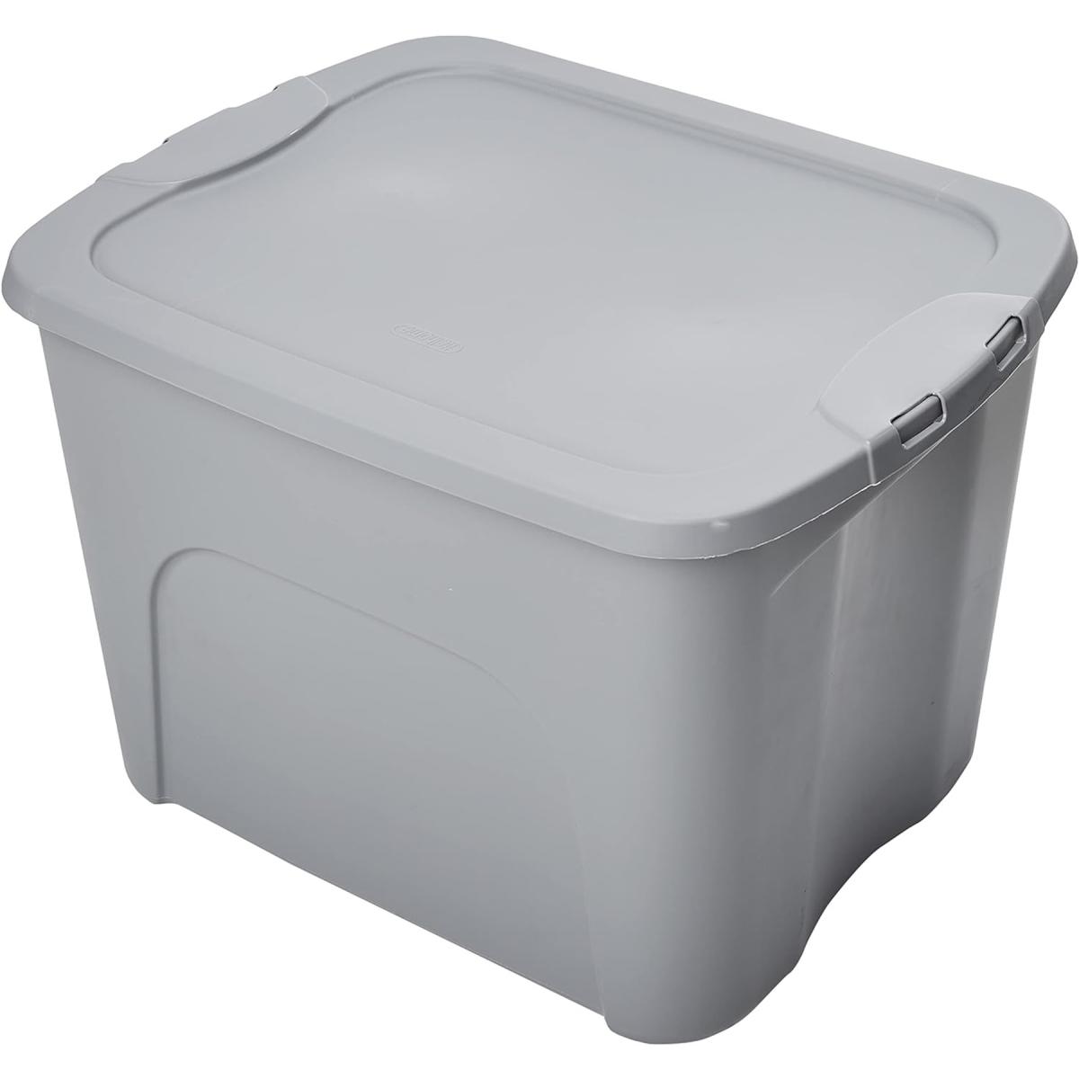 CAJA DE PLÁSTICO COLOR GRIS CON TAPA CAPACIDAD 87L