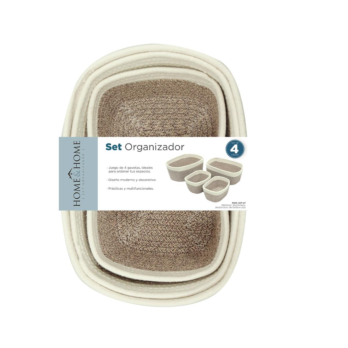 SET 4 GAVETAS ALGODÓN BEIGE Y CAFÉ