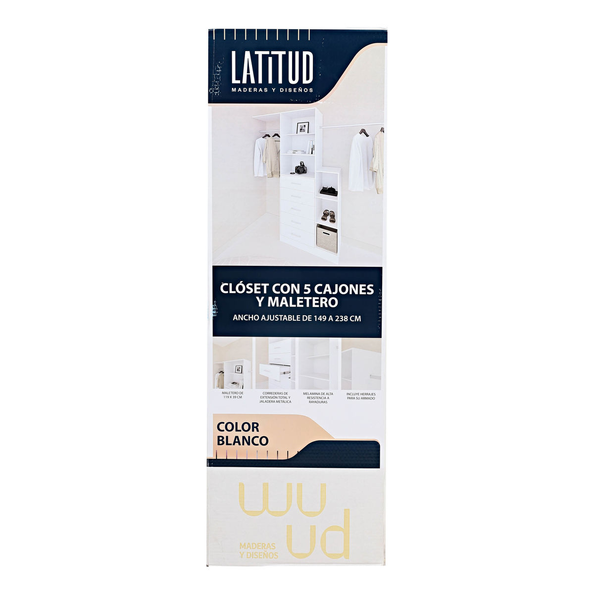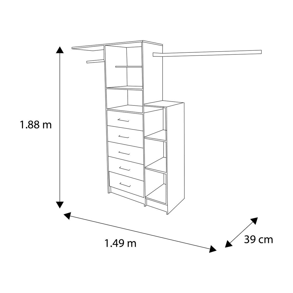 CLÓSET DE 5 CAJONES MELAMINA BLANCO 1.88 X 1.49 M X 39 CM