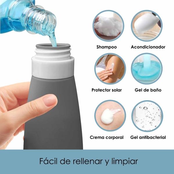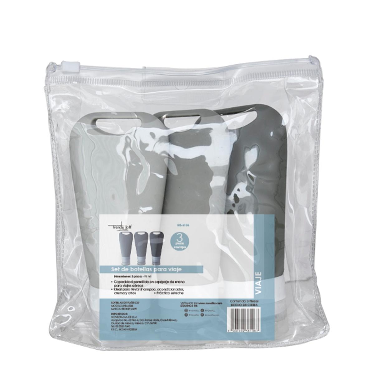 JUEGO DE 3 BOTELLAS DE SILICÓN DE 90 ML PARA VIAJE