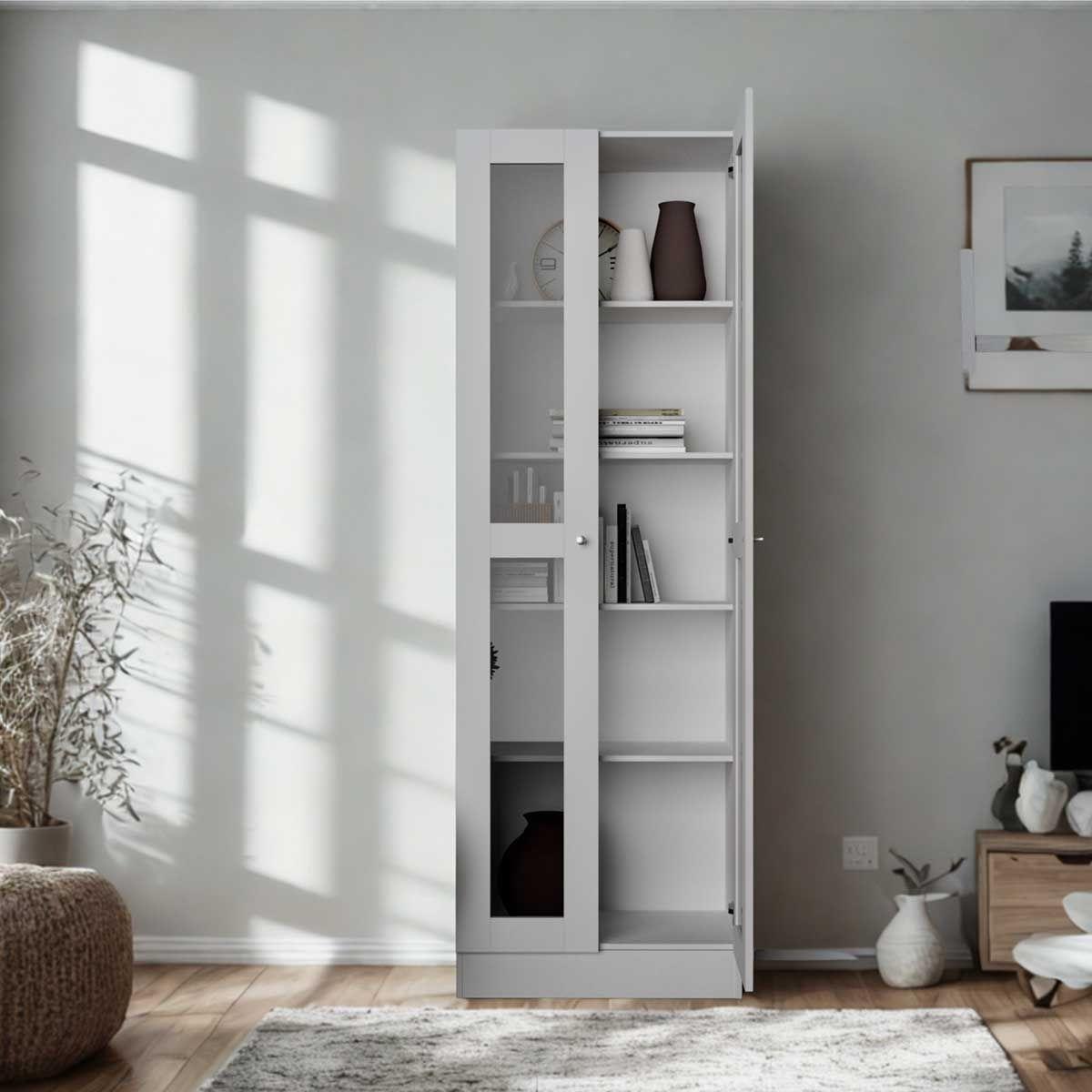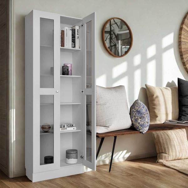 ESTANTE MULTIUSOS CON PUERTAS DE ACRÍLICO COLOR BLANCO
