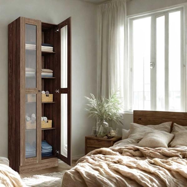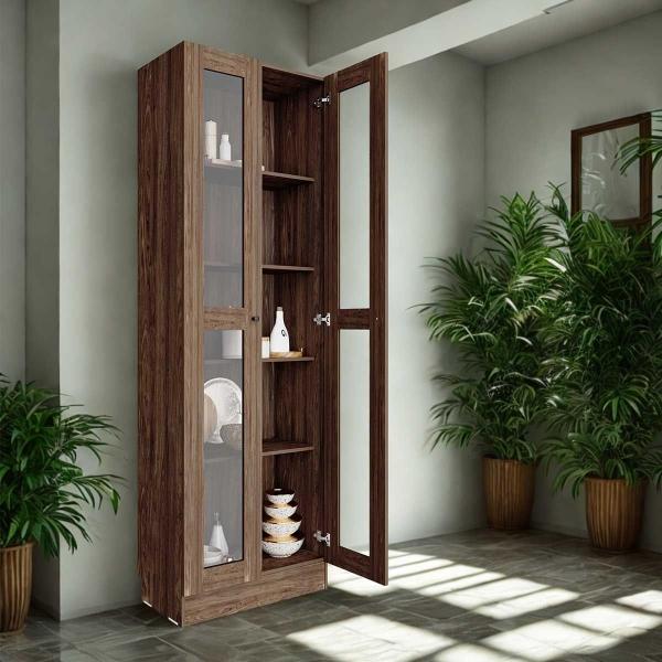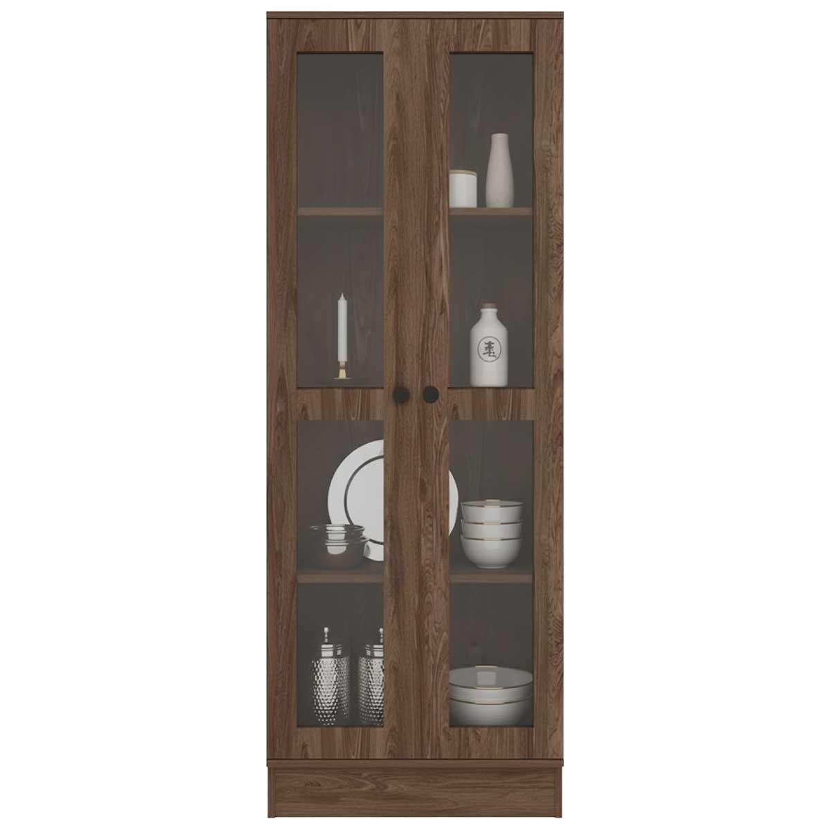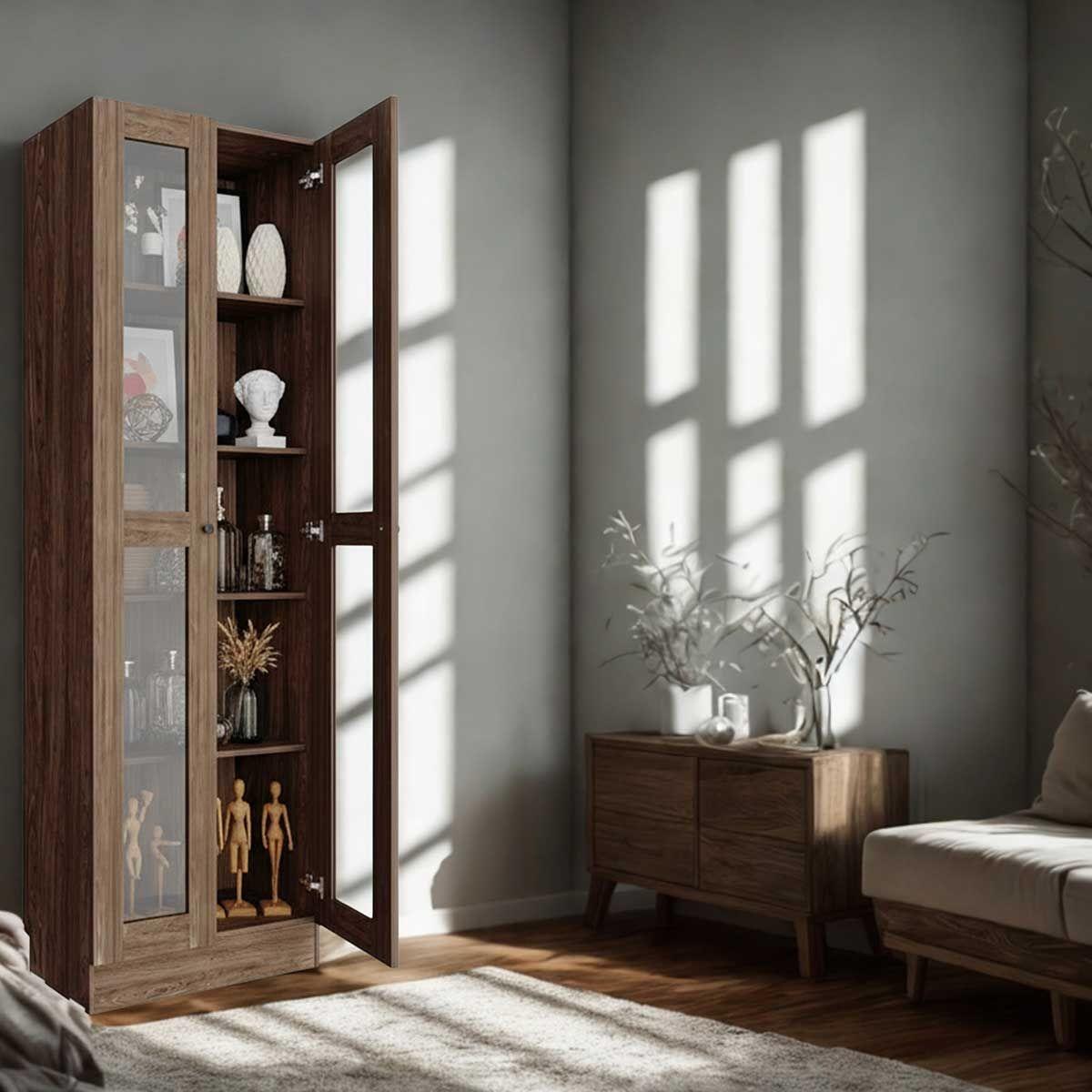ESTANTE MULTIUSOS CON PUERTAS DE ACRÍLICO COLOR NOGAL