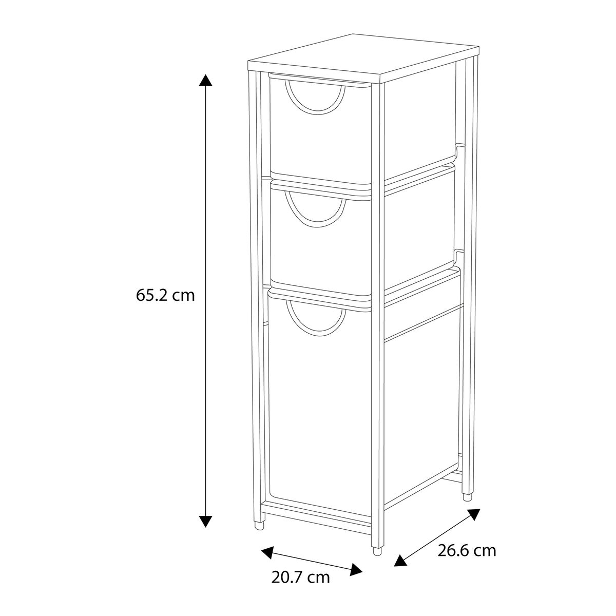 CESTA DE ALMACENAMIENTO 3 NIVELES DE ACERO 65.2 X 20.7 X 26.6 CM BLANCO