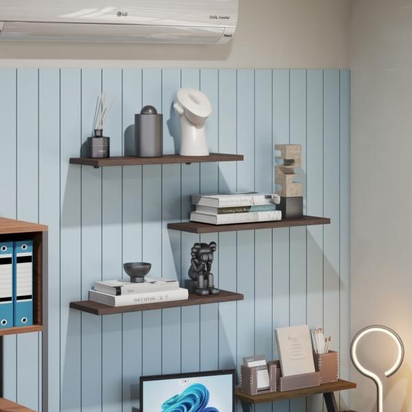 JUEGO DE 3 REPISAS 60 DISEÑO MODERNO Y FUNCIONAL FÁCIL INSTALACIÓN CON HERRAJES INCLUIDOS COLOR NOGAL