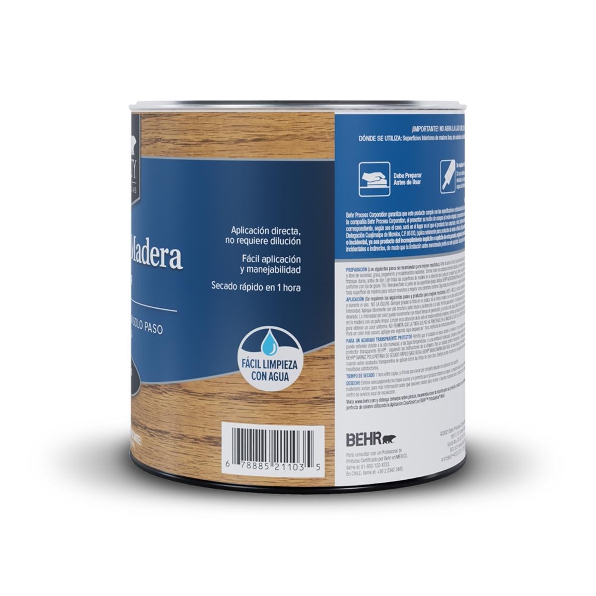 Tinta base agua de 946 ml para interior behr specialty color roble claro, útil para entintar sin acabado y sellador cualquier tipo de superficie de madera como muebles, gabinetes, puertas, terminados de adorno, molduras y pisos.