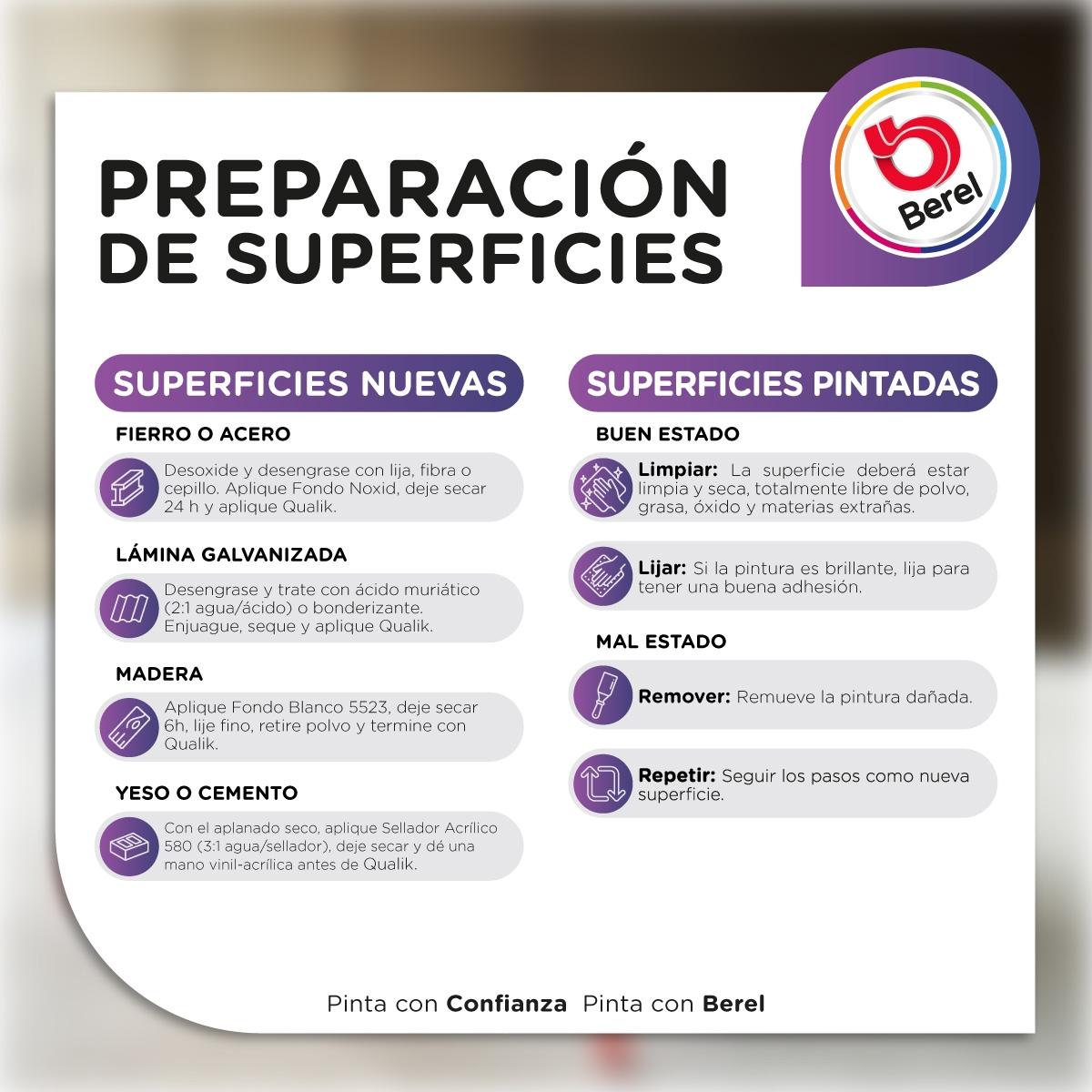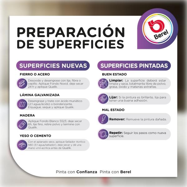 Esmalte Berel Qualik Alquidálico para interior/exterior, presentación de 4l en color blanco, acabado brillante. Para superficies de hierro, madera, mampostería, entre otros. Tiene un rendimiento de 7 a 9 m/L. Ofrece beneficios como alto brillo, buen rendimiento y excelente acabado. Garantía 1 año