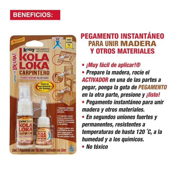 PEGAMENTO INSTANTÁNEO PARA UNIR MADERA KOLA LOKA 2 PIEZAS