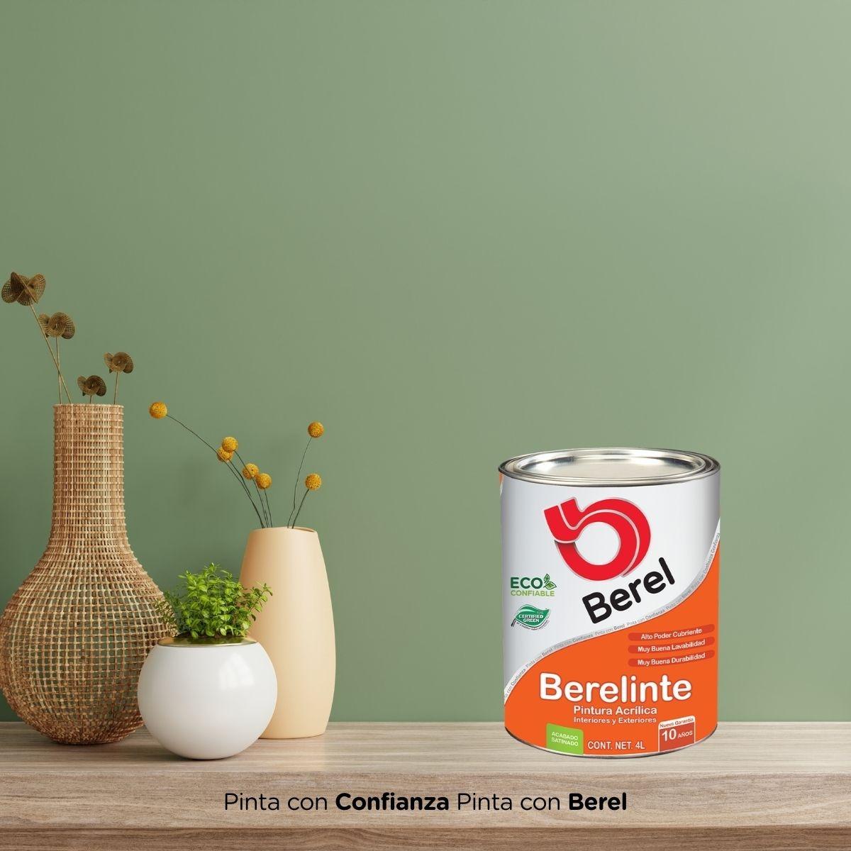 Pintura Berel Berelinte Vinil Acrílica para interior/exterior, presentación de 4l en color blanco, acabado satinado. Para superficies de yeso, ladrillo, cemento y mortero. Tiene un rendimiento de 8 a 10 m/L. Ofrece beneficios como extraordinaria duración, rendimiento, poder cubriente y gran resistencia al lavado.. Garantía 10 años.