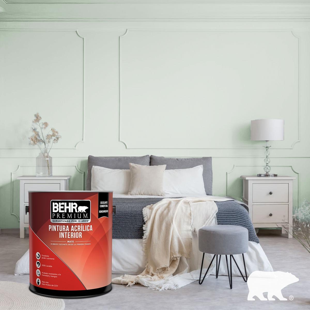 Pintura Acrílica para interiores con cubrimiento excepcional. Certificada por GreenGuard. Los códigos de colores de pintura que se muestran en pantalla son aproximados por lo que el producto aplicado podría variar.