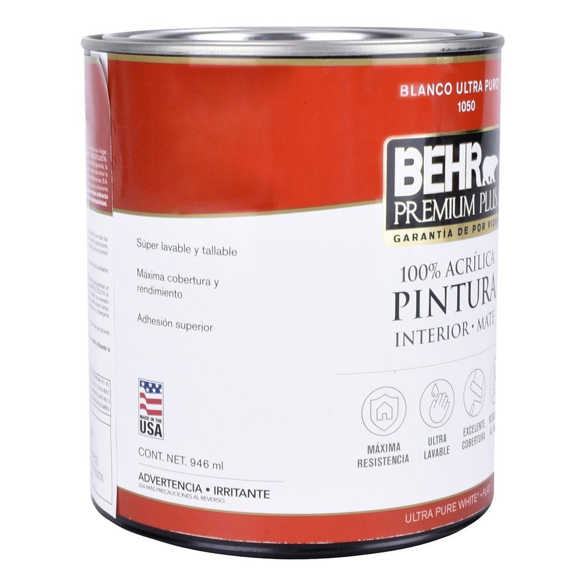 PINTURA 100% ACRÍLICA PARA INTERIOR BEHR PREMIUM PLUS DE 946 MILILITROS MATE