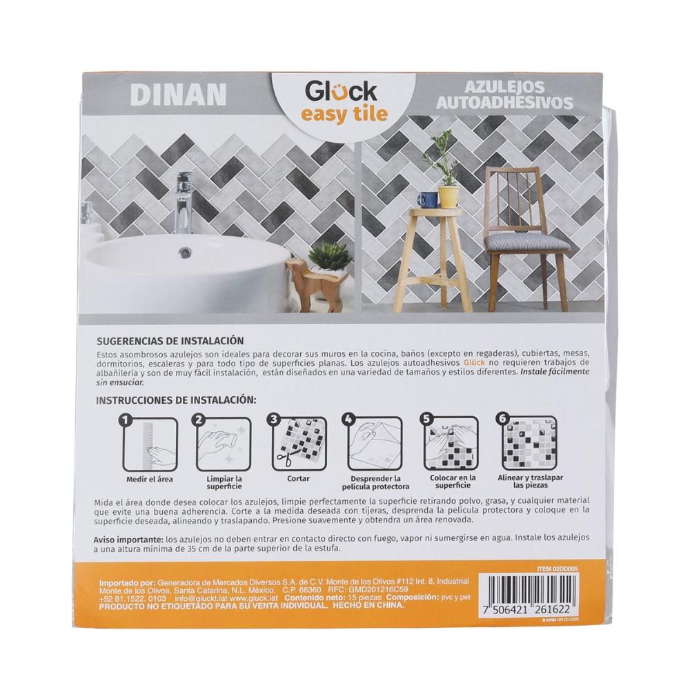 AZULEJO AUTOADHESIVO GLÜCK 26 X 26 CM .97 M2 15 PIEZAS