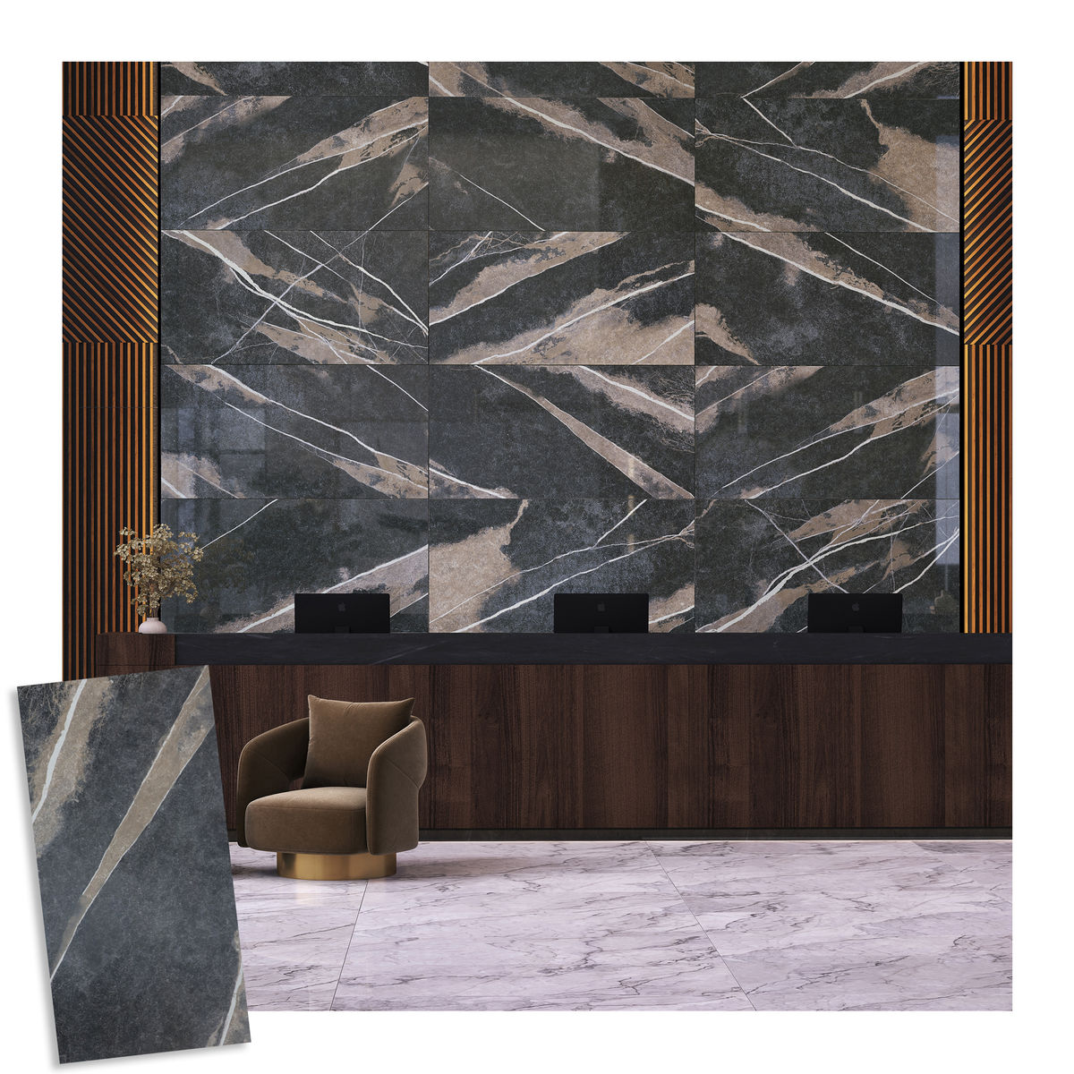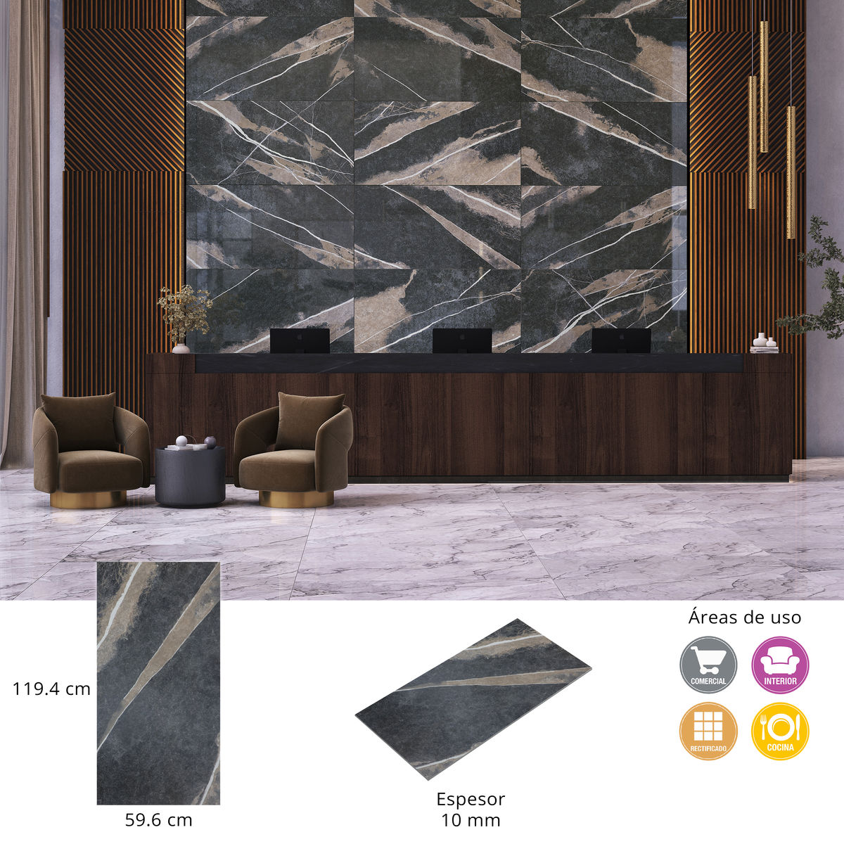 PISO MONTERA 59.6 X 119.4 RECTIFICADO NEGRO CAJA CON 1.42 M2