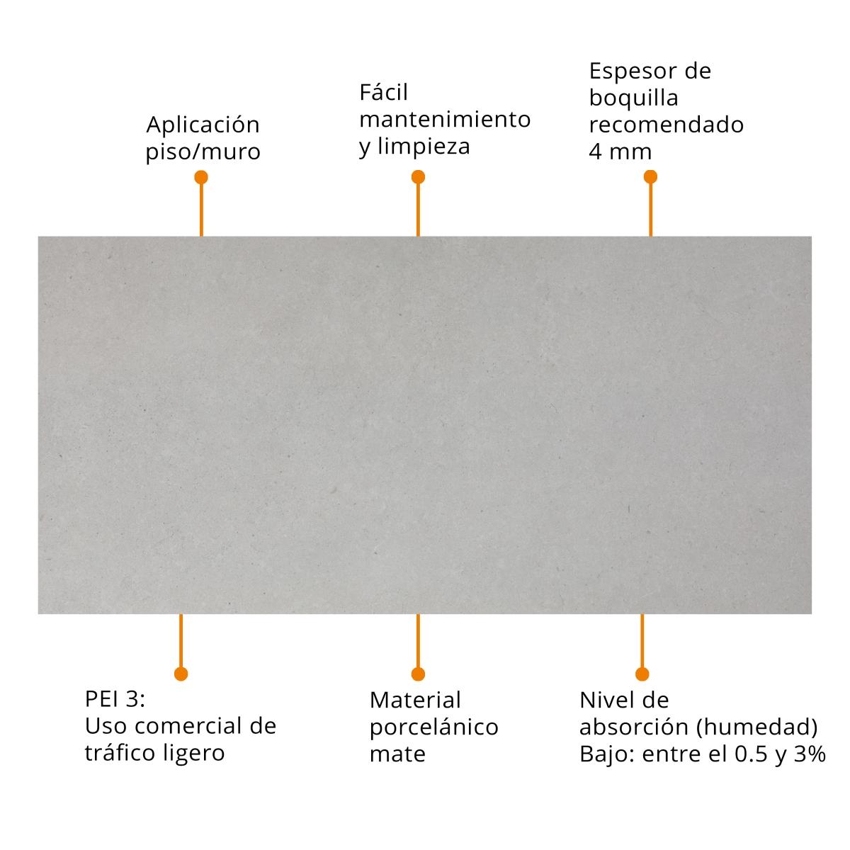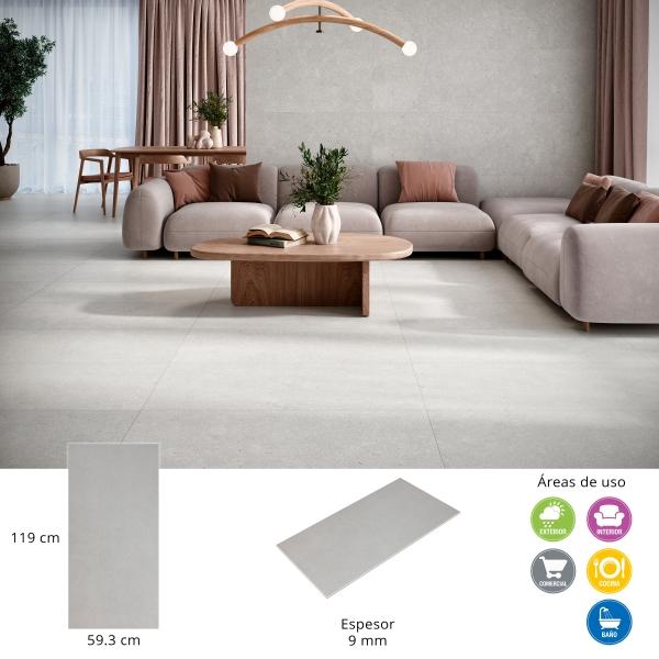 PISO PORCELANATO FASIO 59.3 X 119 CM GRIS TIPO RÚSTICO CAJA CON 2.12 M2