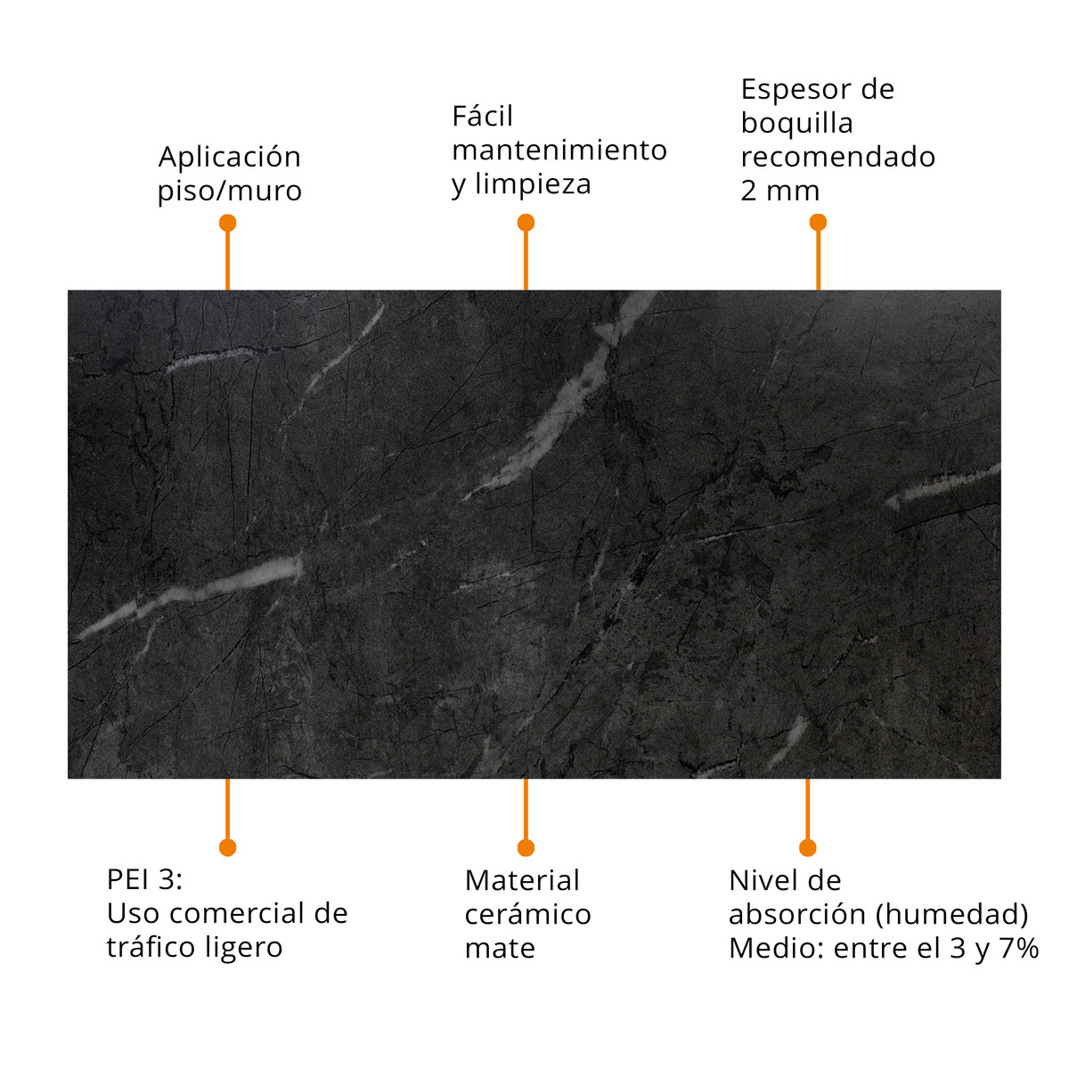 PISO PORCELANATO SERNEN 50 X 100 CM NEGRO TIPO MÁRMOL CAJA CON 1.5 M2