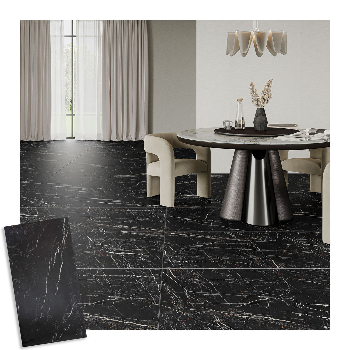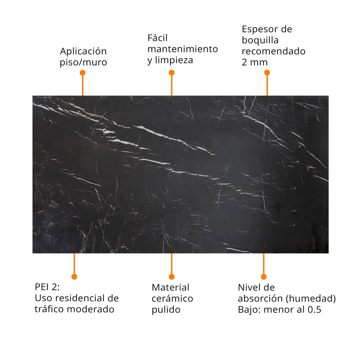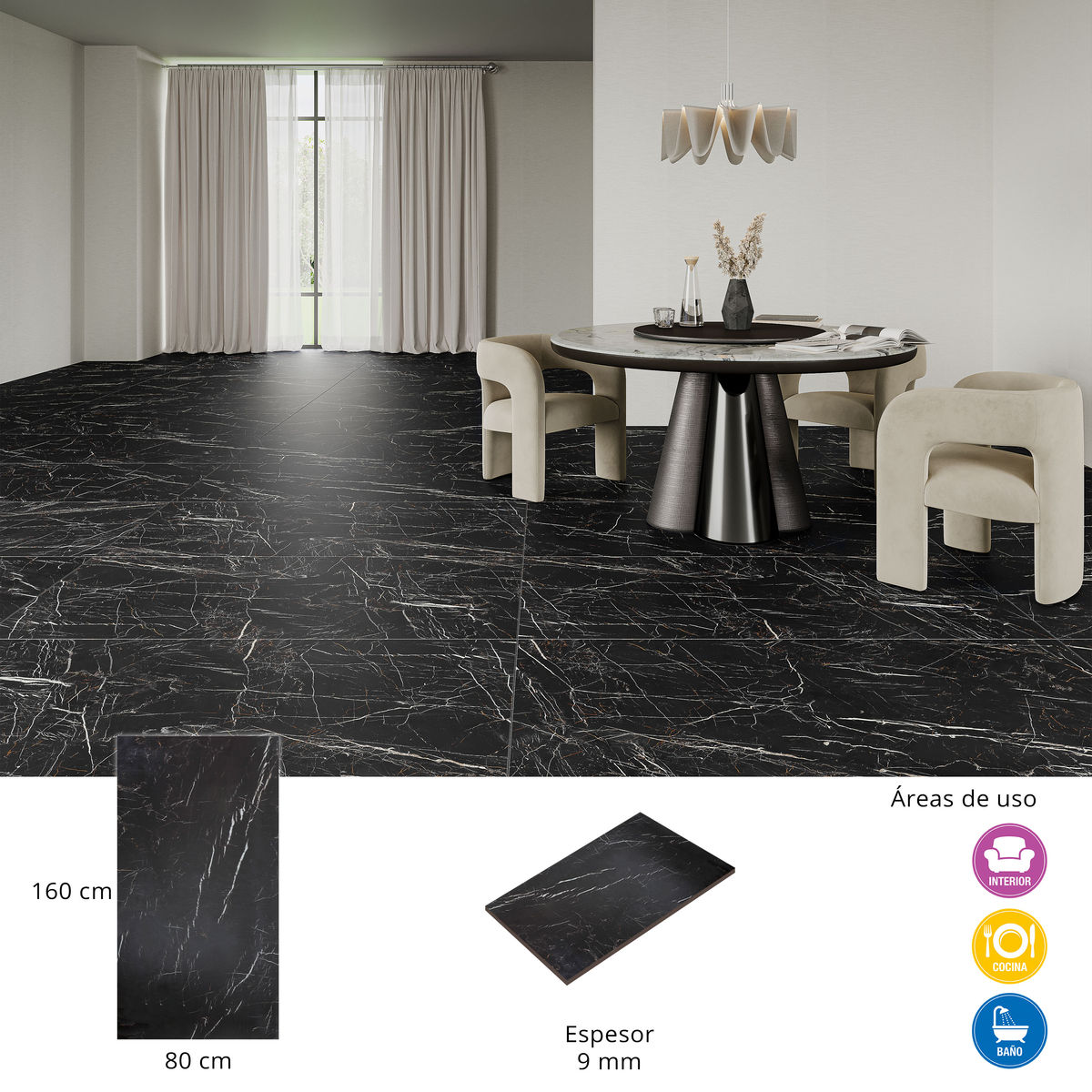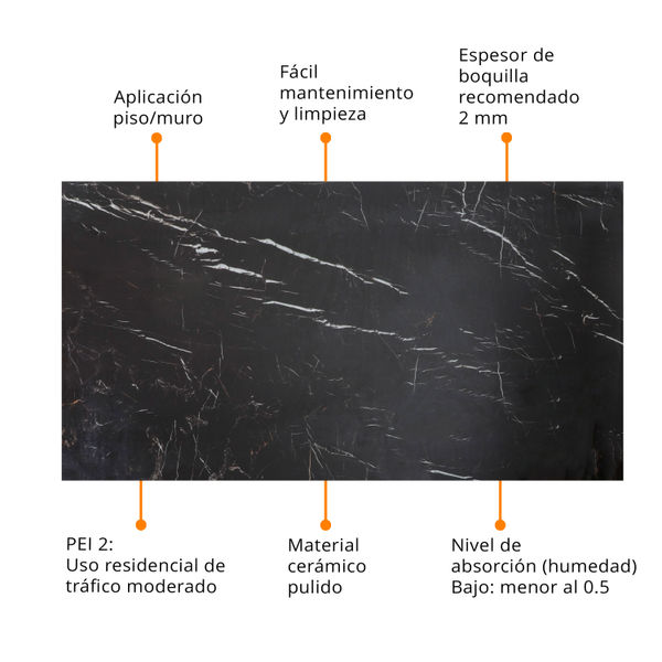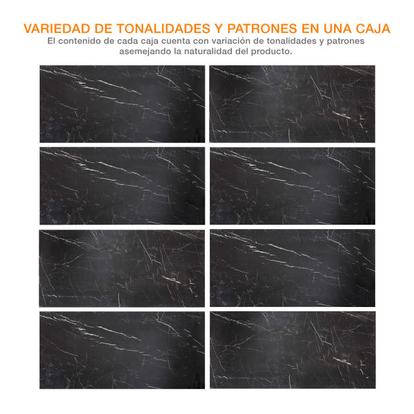 PISO PORCELANATO MILANO 80 X 160 CM NEGRO TIPO MÁRMOL CAJA CON 2.56 M2