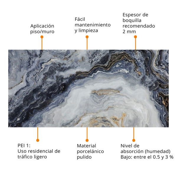 PORCELÁNICO PERSIAN BLUE 60 X 120 AZUL 1.44 M2