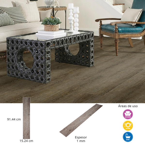 PISO VINÍLICO AUTOADHERIBLE TIPO MADERA 15.24 X 91.44 CM GRIS ASH CAJA CON 3.34 M2