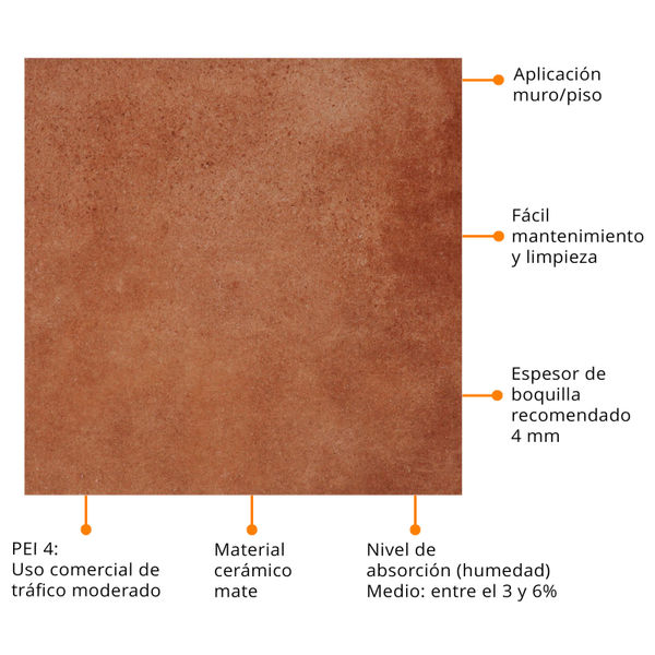 PISO MONTERO 44X44 ROJO 1.92 M2