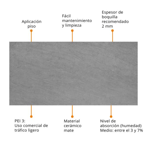 PISO CERÁMICA BORGO 50 X 100 CM GRIS TIPO PIEDRA CAJA CON 1.5 M2