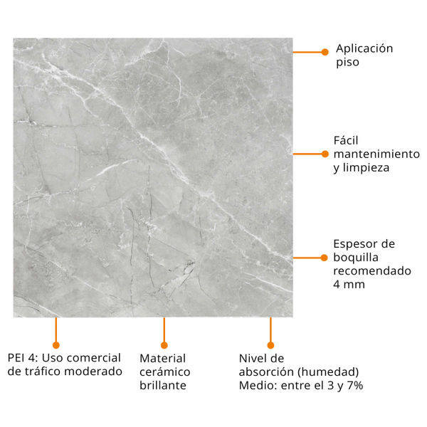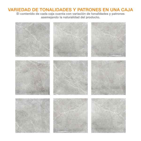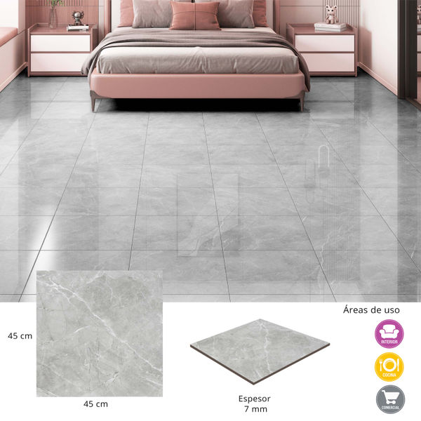 PISO CERÁMICA CANTORAL 45 X 45 CM GRIS TIPO MÁRMOL CAJA CON 1.62 M2