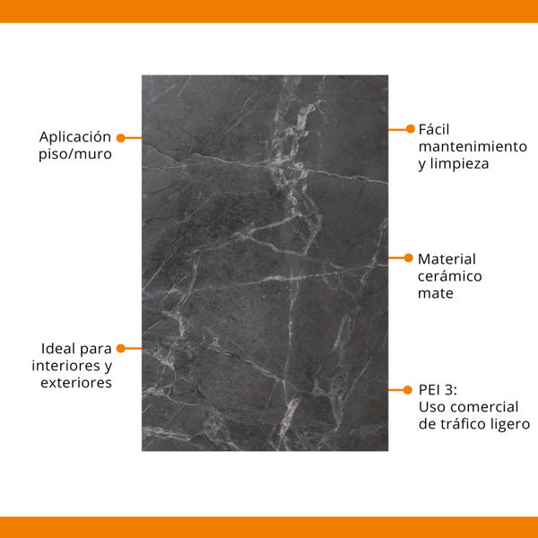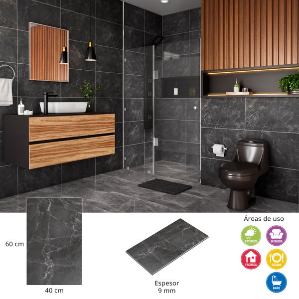 PISO CERÁMICO TUNDRA 40 X 60 CM. NEGRO TIPO MÁRMOL CAJA CON 1.44 M2