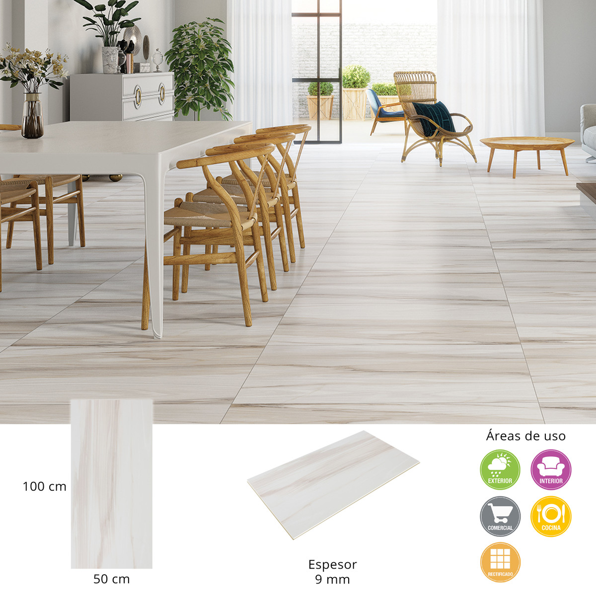 PISO CERÁMICO NAPOLES 50 X 100 CM BLANCO TIPO MÁRMOL CAJA CON 1.5 M2