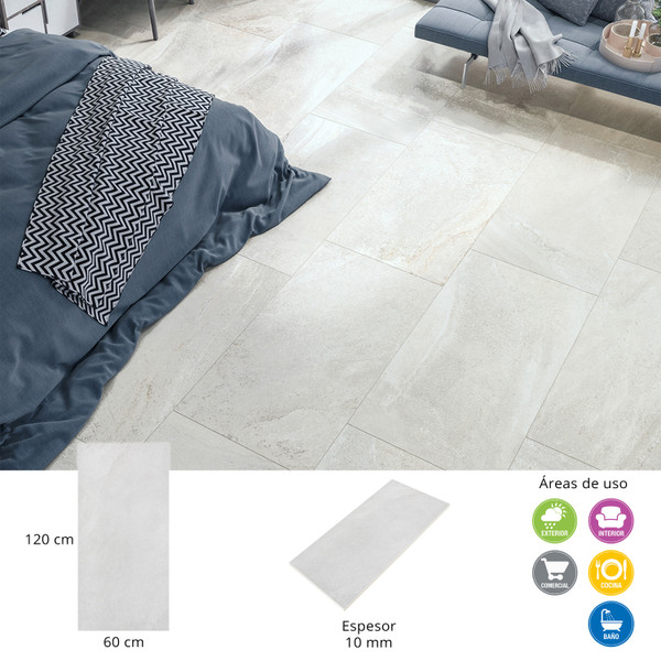 PISO CERÁMICA TOPACIO 60 X 120 CM BLANCO TIPO PIEDRA CAJA CON 1.44 M2