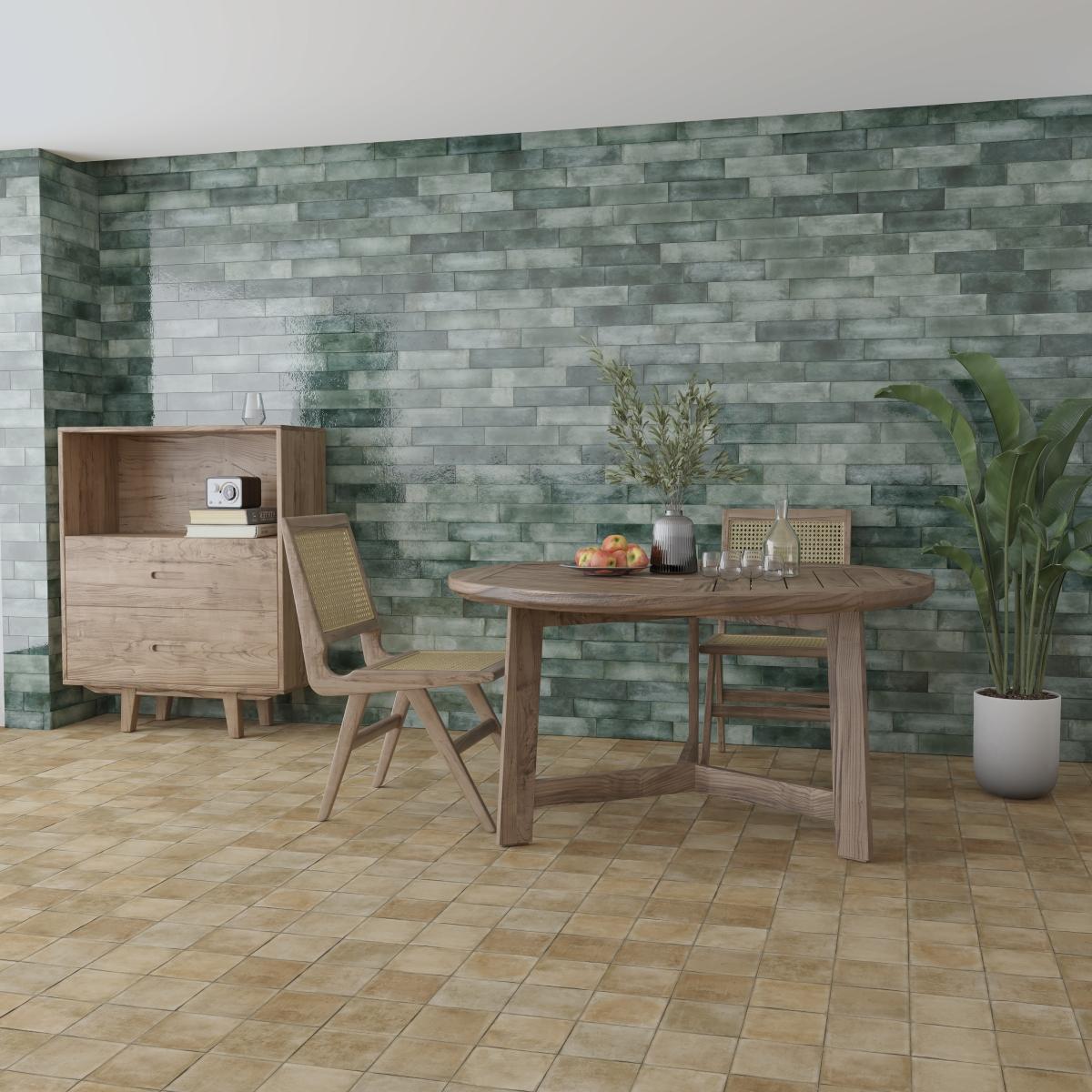 MURO CERÁMICO BREDA GREEN GLOSSY 30 X 7.5 CM VERDE CAJA CON 1.30 M2