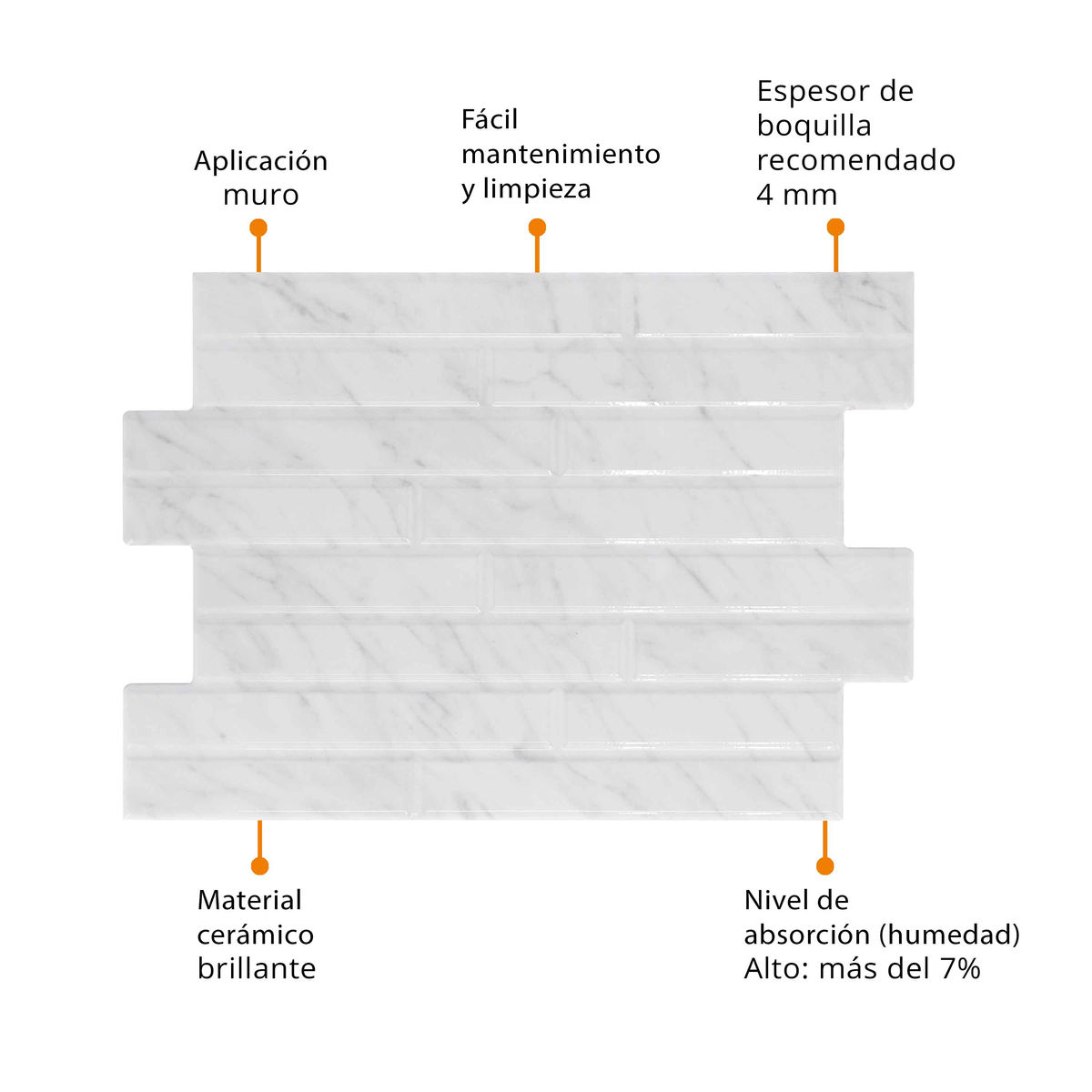 MURO CERÁMICO MYSTIC 30 X 45 CM BLANCO TIPO MÁRMOL CAJA CON 1.88 M2