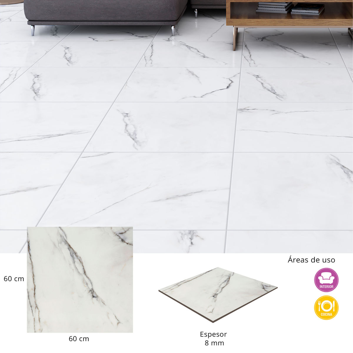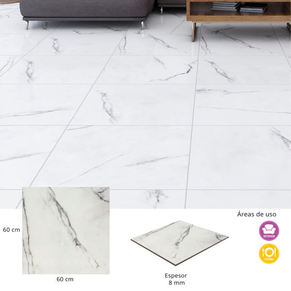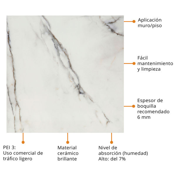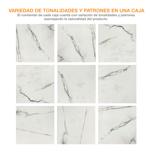 PISO CERÁMICO LIMA 60 X 60 CM BLANCO TIPO MÁRMOL CAJA CON 1.44 M2