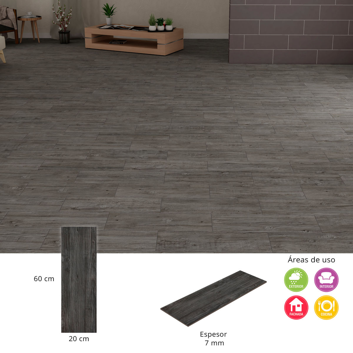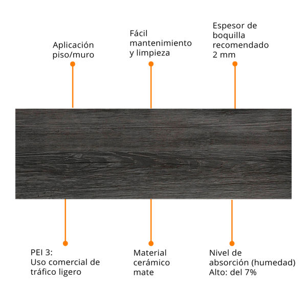 PISO CERÁMICO MANILA 20 X 60 CM GRIS TIPO MADERA CAJA CON 1.44 M2