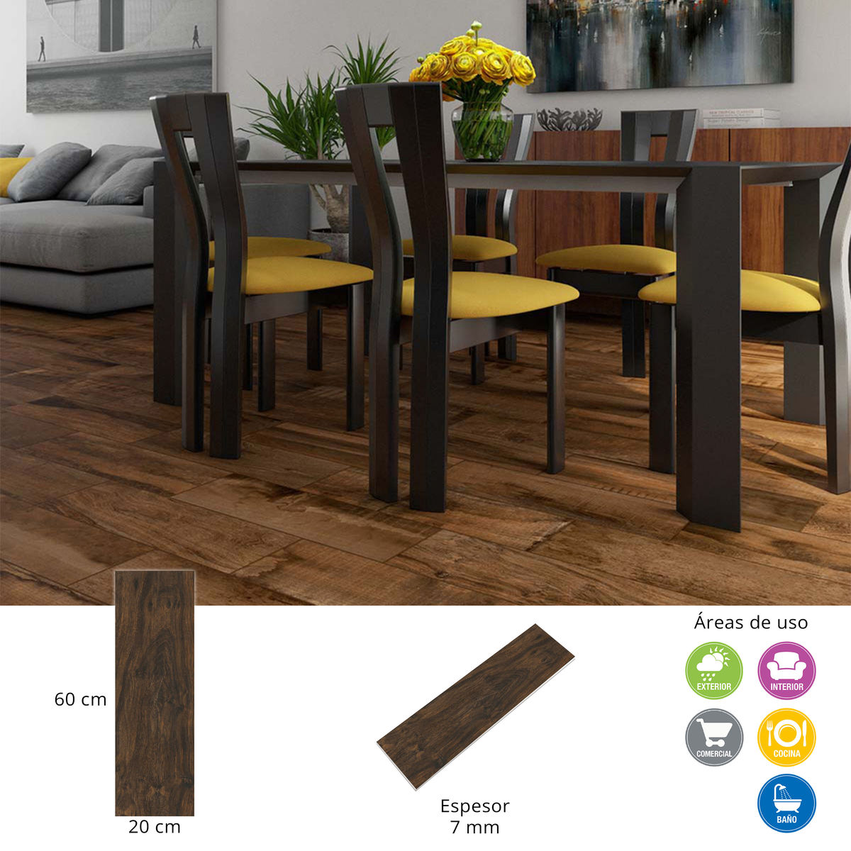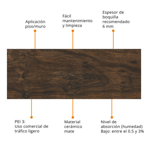 PISO CERÁMICA MANITOBA 20 X 60 CM CAFÉ TIPO MADERA CAJA CON 1.20 M2