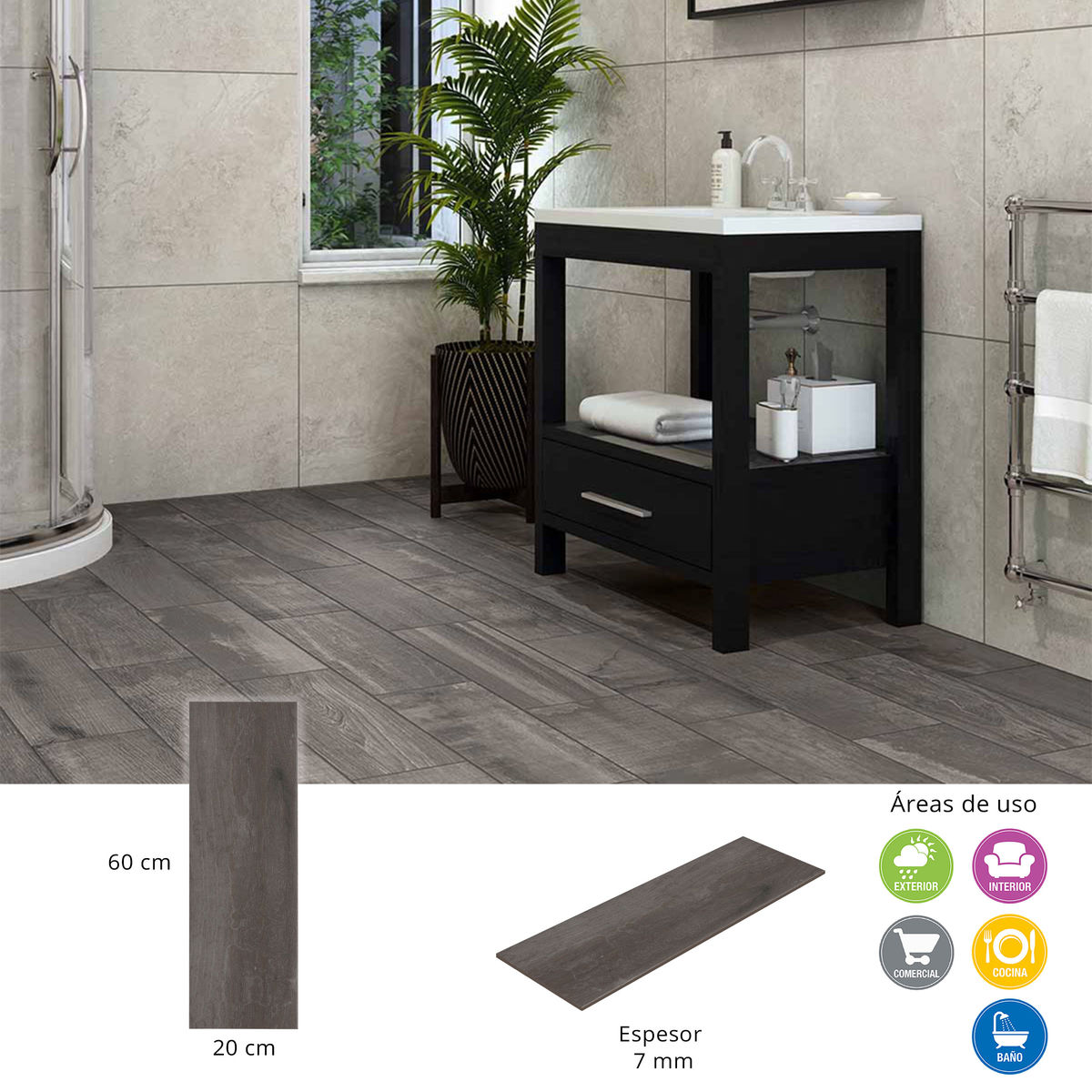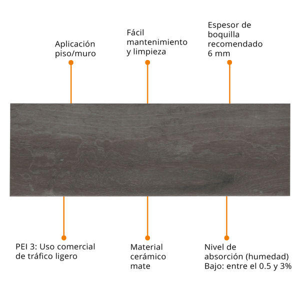 PISO CERÁMICA MANITOBA GRAY 20 X 60 CM GRIS TIPO MADERA CAJA CON 1.20 M2