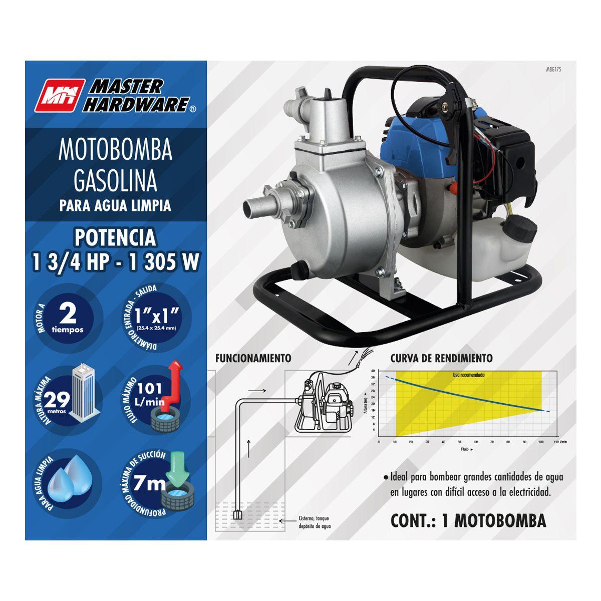 MOTOBOMBA A GASOLINA 1 3/4 HP MASTER HARDWARE